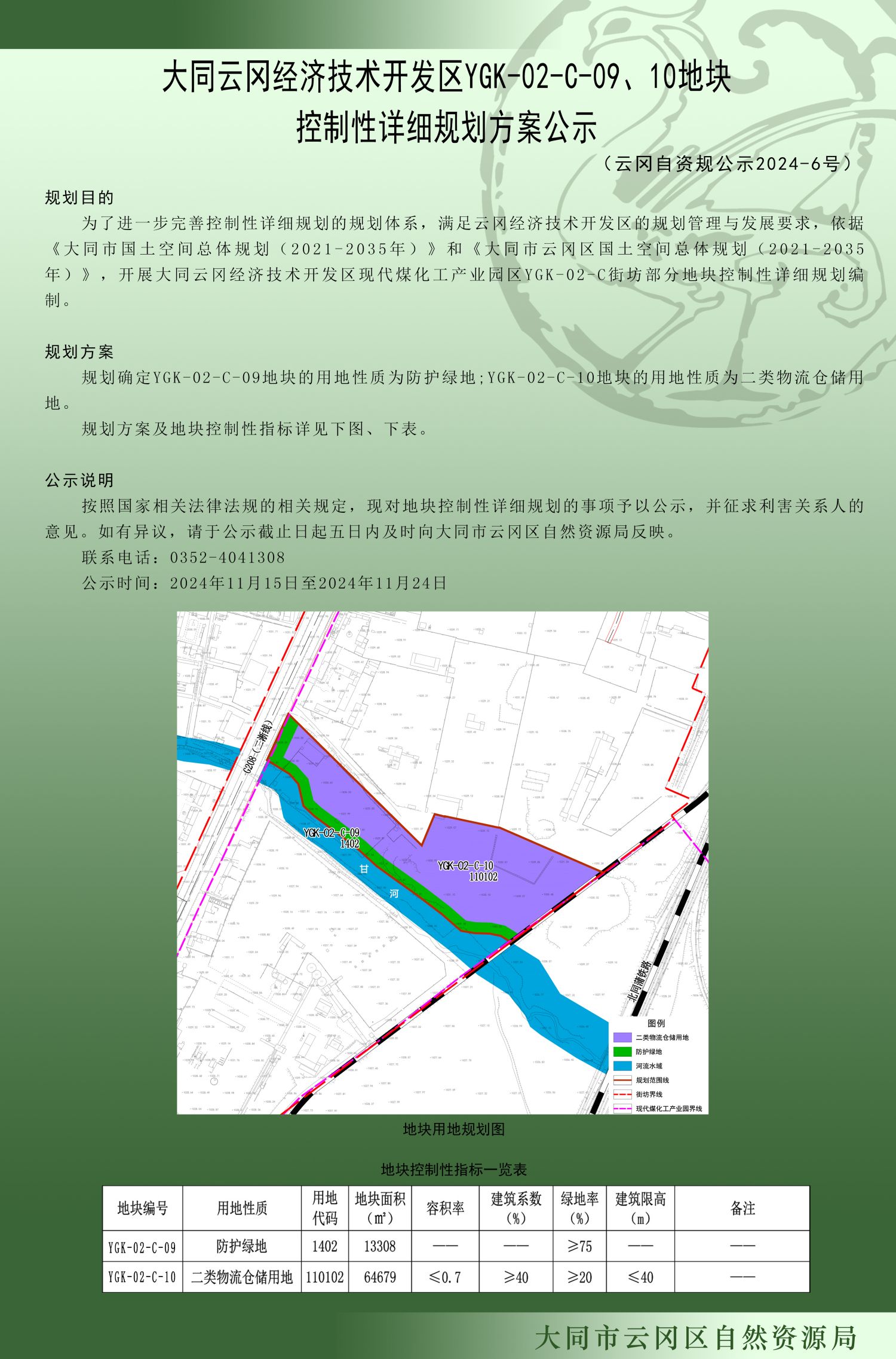 大同云岡經(jīng)濟技術開發(fā)區(qū)YGK-02-C-09、10地塊控制性詳細規(guī)劃方案公示
