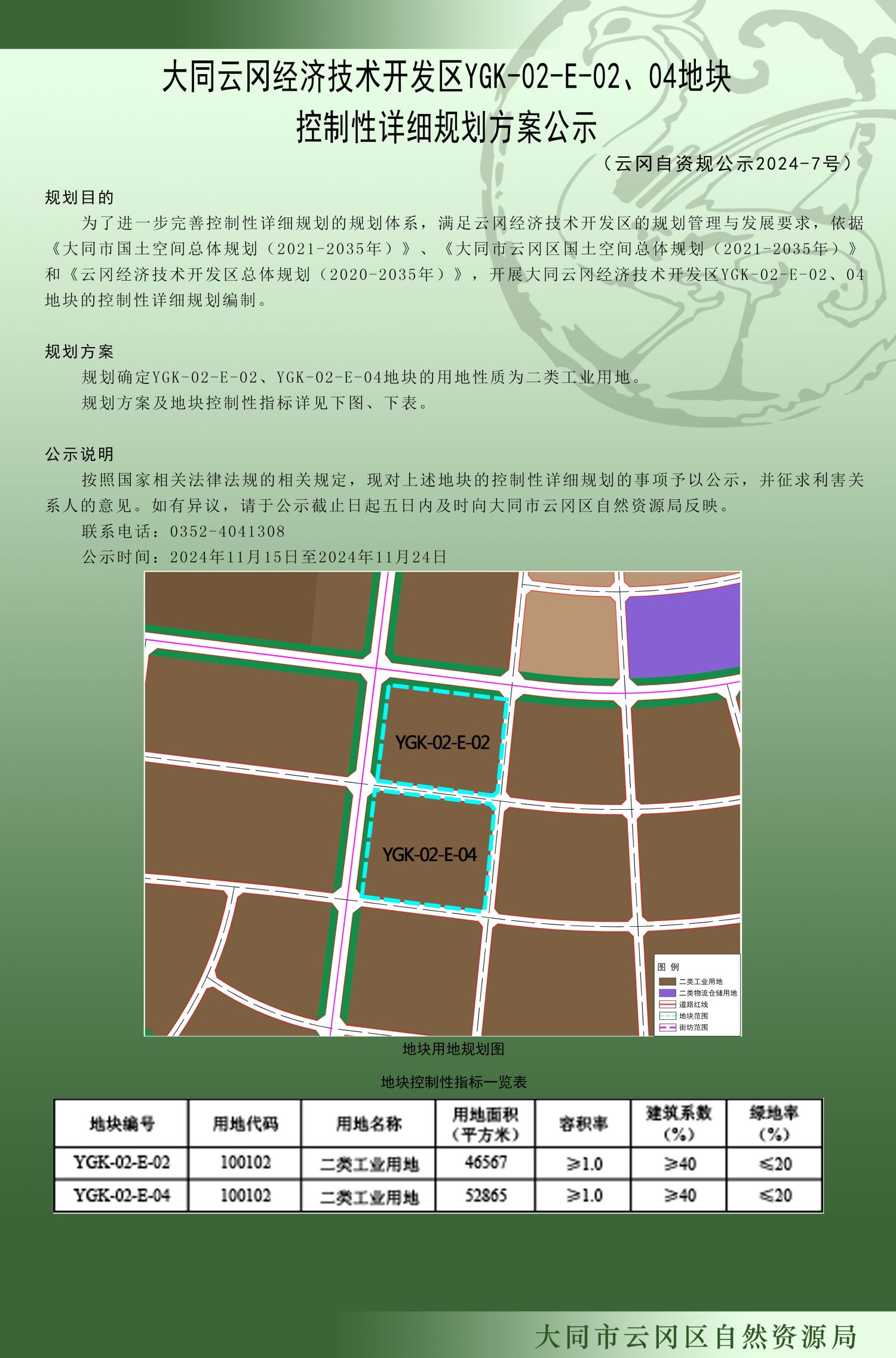 大同云岡經(jīng)濟(jì)技術(shù)開發(fā)區(qū)YGK-02-E-02、04地塊控制性詳細(xì)規(guī)劃方案公示
