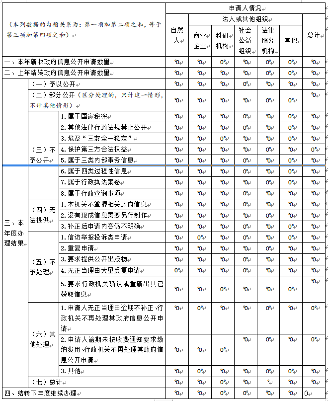 2022年,我局共受理依申請(qǐng)公開(kāi)0件。本年度我局在政府信息公開(kāi)工作中的行政復(fù)議或行政訴訟事項(xiàng)為0件。