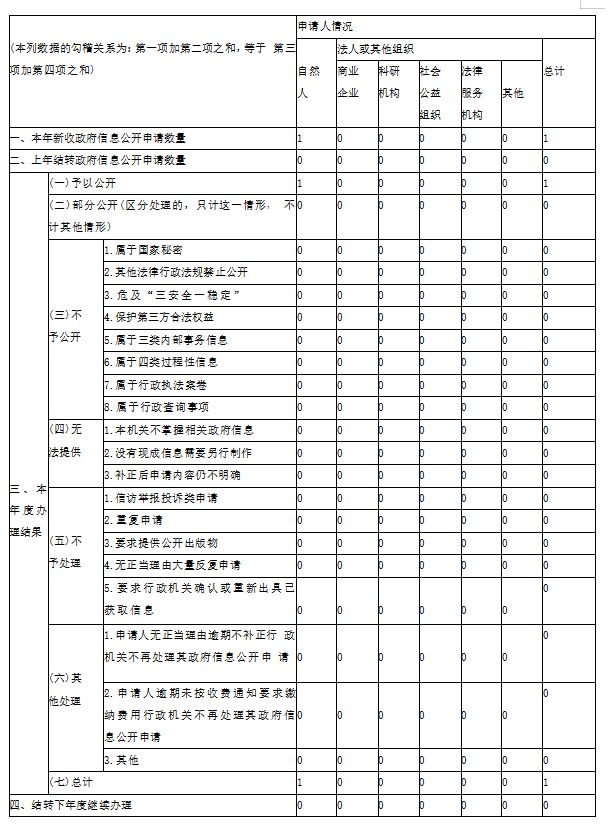 三、收到和處理政府信息公開申請情況