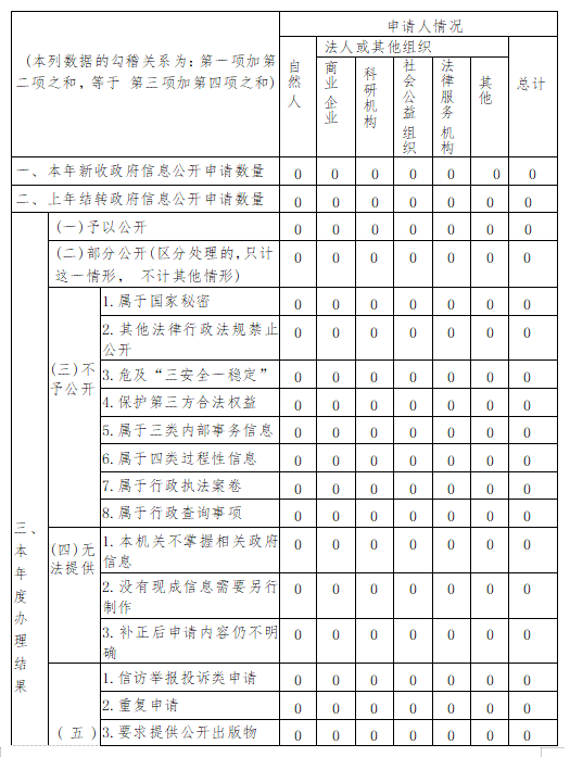 三、收到和處理政府信息公開申請情況