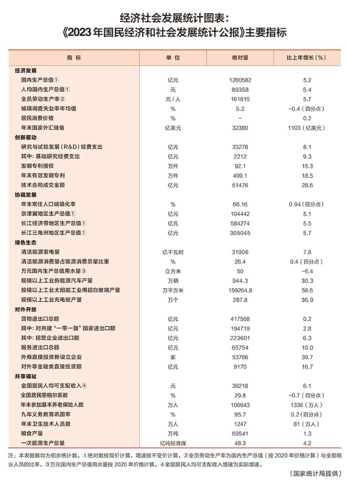經(jīng)濟社會發(fā)展統(tǒng)計圖表:《2023年國民經(jīng)濟和社會發(fā)展統(tǒng)計公報》主要指標