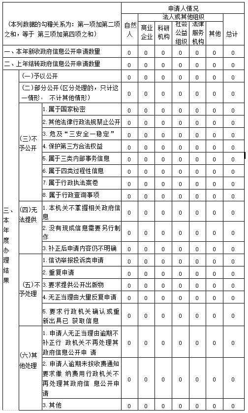 2023年我局深入貫徹落實(shí)《中華人民共和國(guó)政府信息公開條例》,準(zhǔn)確把握新時(shí)代政務(wù)公開工作的職責(zé)定位和面臨的新形勢(shì)新要求,著力加強(qiáng)政務(wù)公開標(biāo)準(zhǔn)化規(guī)范化建設(shè),全面推進(jìn)政務(wù)決策公開、執(zhí)行公開、管理公開、服務(wù)公開、結(jié)果公開,全年未發(fā)生因政府信息公開申請(qǐng)行政復(fù)議、提起行政訴訟和申訴的情況。