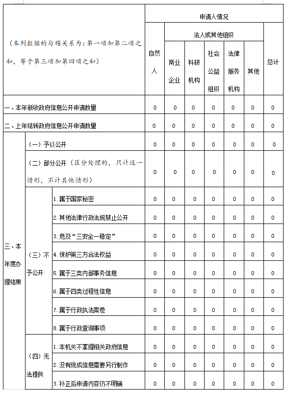 三、收到和處理政府信息公開申請情況